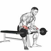 This barbell movement primarily targets forearms, including wrist extensors, wrist flexors.